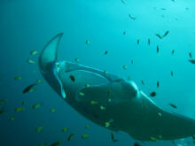 La surprise du soir ... Nous avons eu une visite ... une visite extraordinaire d'une raie Manta qui se nourrit à l'arrière du bateau ... elle nous a fait un balai de trois heures !!! Elle venait vraiment jusqu'à la surface et nager avec elle fut un régal inoubliable !!!!!!
