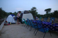 Nous reprenons la piste ... à peine visible, pour arriver à notre premier véritable campement de Banani. Nous dormons et mangeons sur le toit !