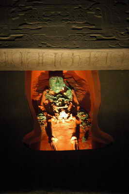 Nous commençons par la visite du dernier site archéologique exhumé, remarquable pour ses peintures murales bien conservées : Cacaxtla. Le site est complètement sous toit !