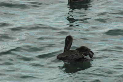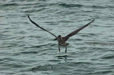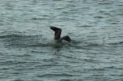 Et nous tombons sur un "nid" de pélicans en pleine chasse ! Il a vu un poisson ! Il plonge !