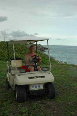 Arrivée aux iles et location d'une petite voiture de golf pour faire le tour de l'ile