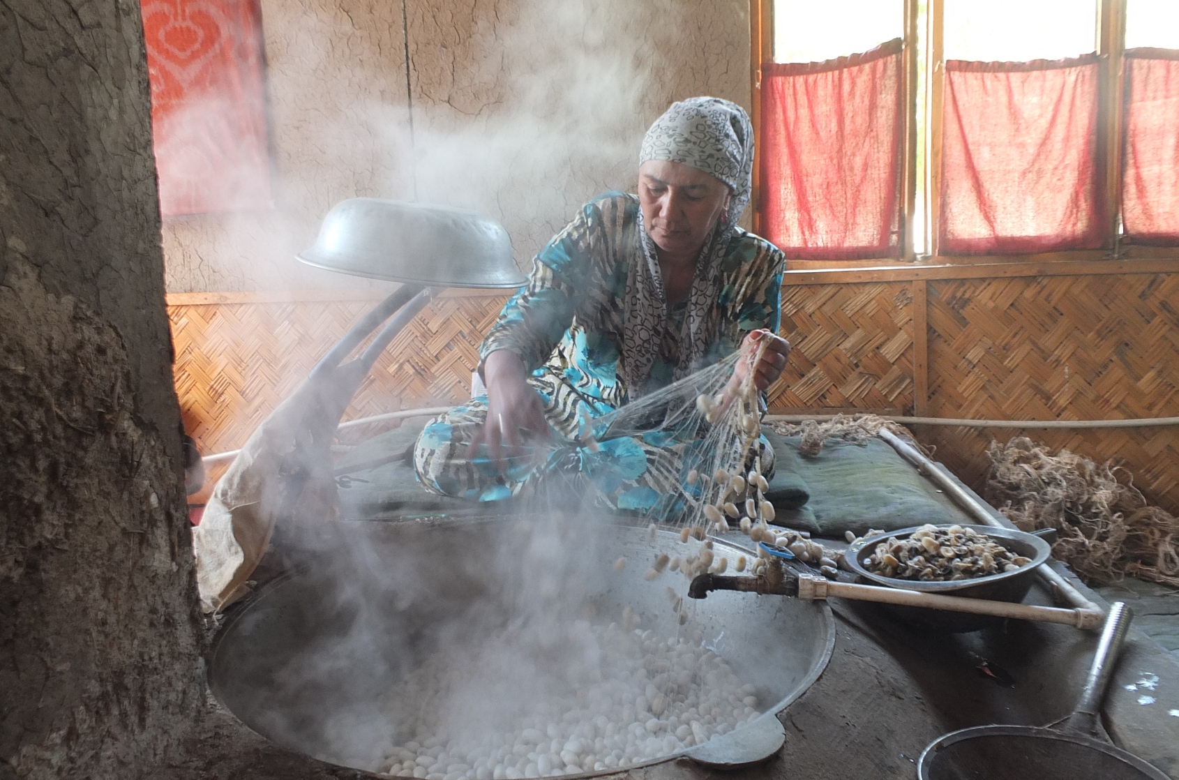 La journée commence par une visite à la fabrique de soie.