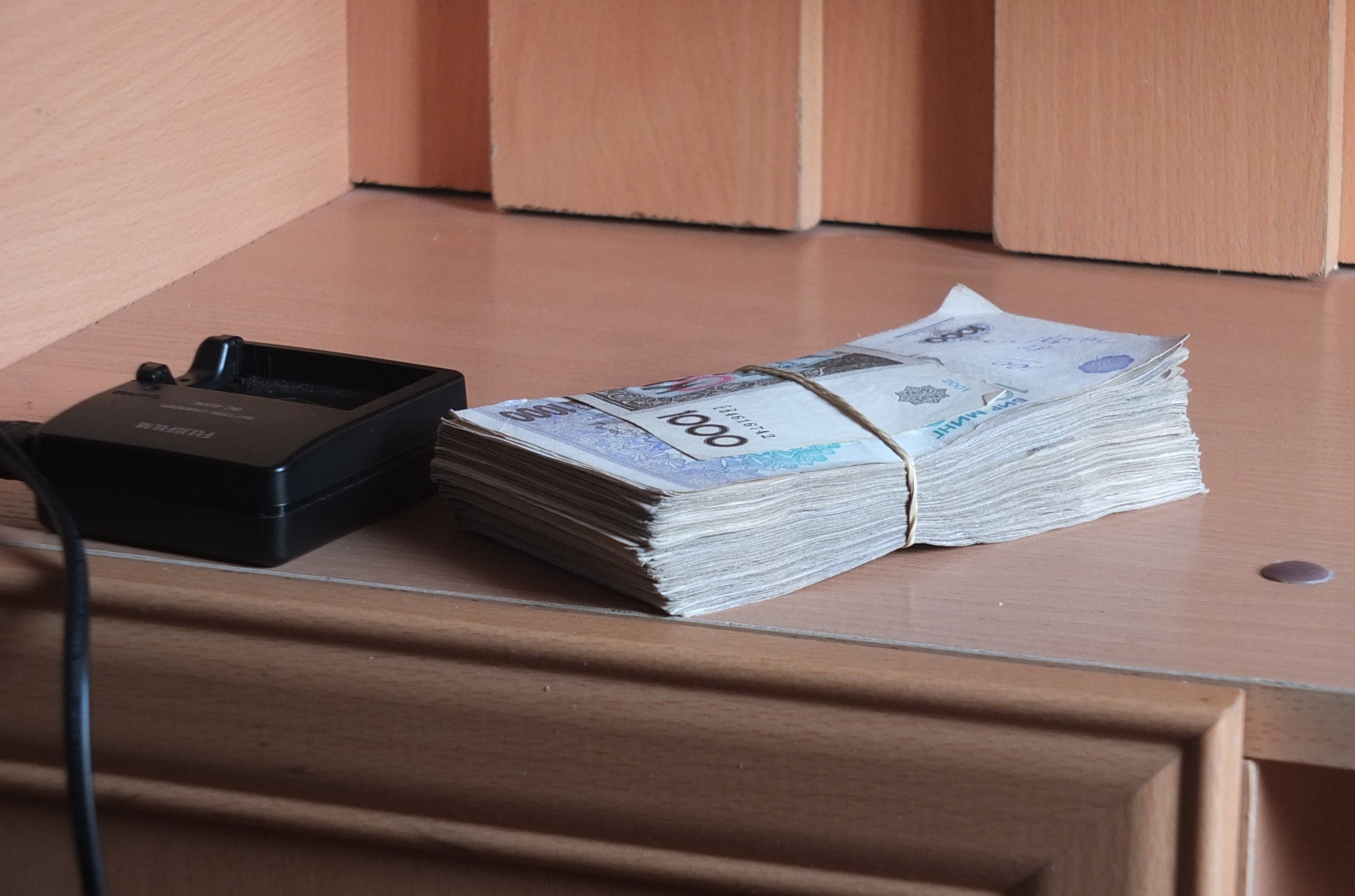 Je change mes premiers sous ..... je reçois 50000 sum pour 15 € !!!!!! Ca fait un beau paquet d'argent et je ne sais ou le mettre .... c'est trop gros pour une poche ... pour ma banane aussi ... sac à dos peut être ???? Bon ok une bouteille d'eau c'est 1200 sum .... Ce paquet va vite diminuer ...