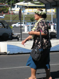 A l'aéroport, il règne une certaines effervescence, les familles accompagnent les leurs qu'ils ont couvert de fleurs pour l'occasion (au revoir ou bonjour ... c'est par les couronnes tressées et les colliers de fleurs que ça passe !)