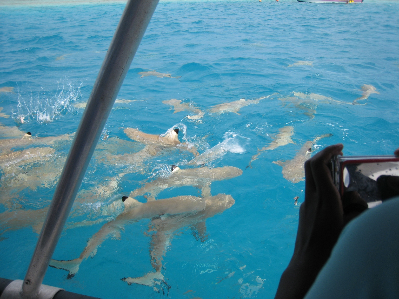Nous quittons le Blue Lagoon et juste à la sortie du site ... un tas de requins nous attendent ... manifestement ils attendent leur repas .... et la bataille commence !