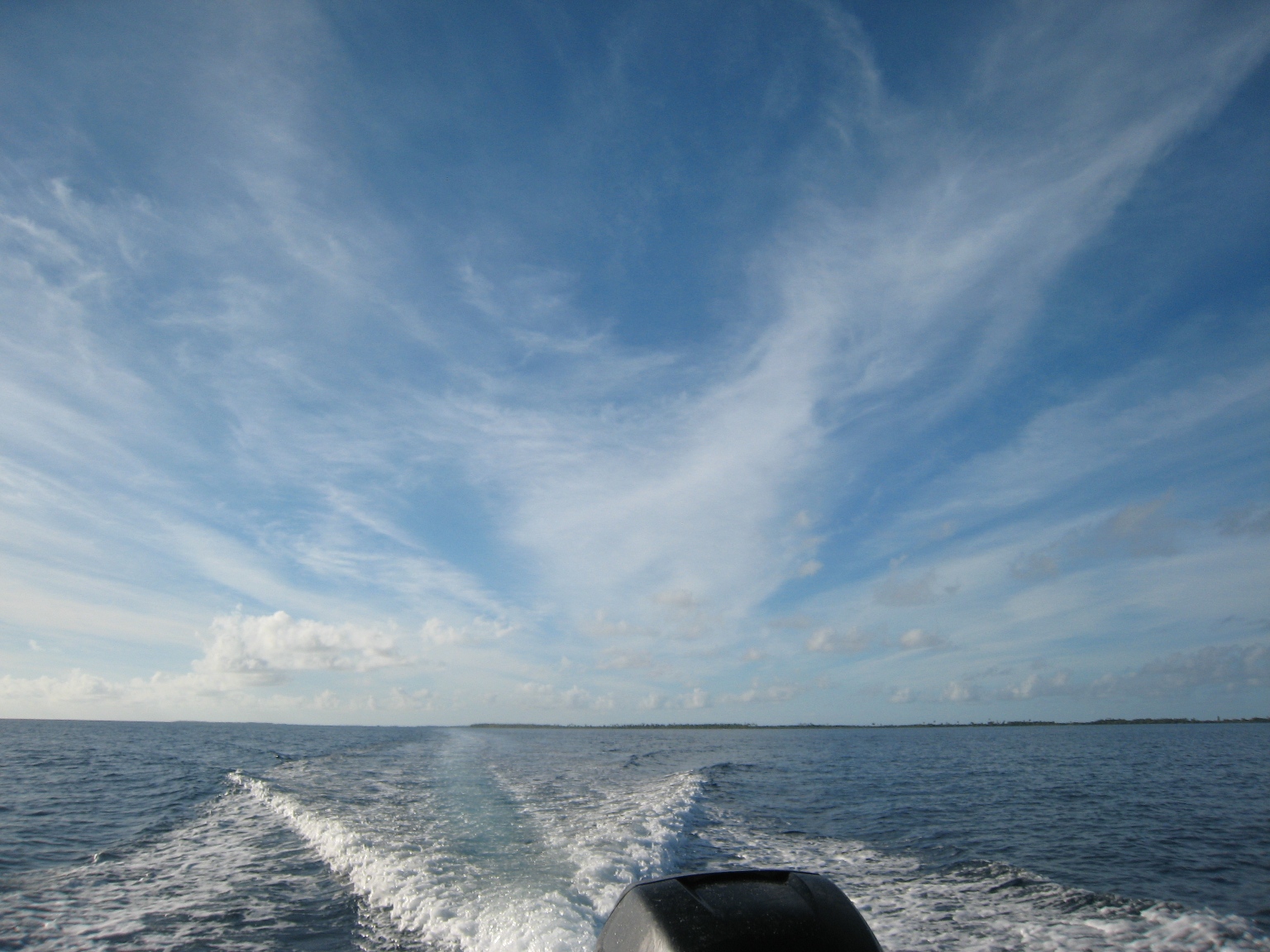 C'est en bateau que nous filons vers Fakarava Sud et heureusement il fait superbe ...