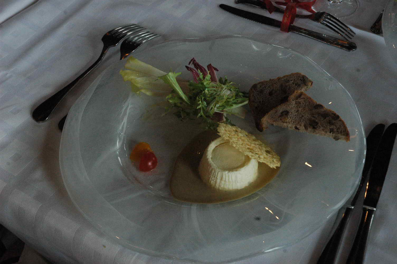 Flan de chèvre chaud au saumon fumé et sa tuile de cantal doux ...... (unanimement reconnu comme le plat number ONE du week-end !