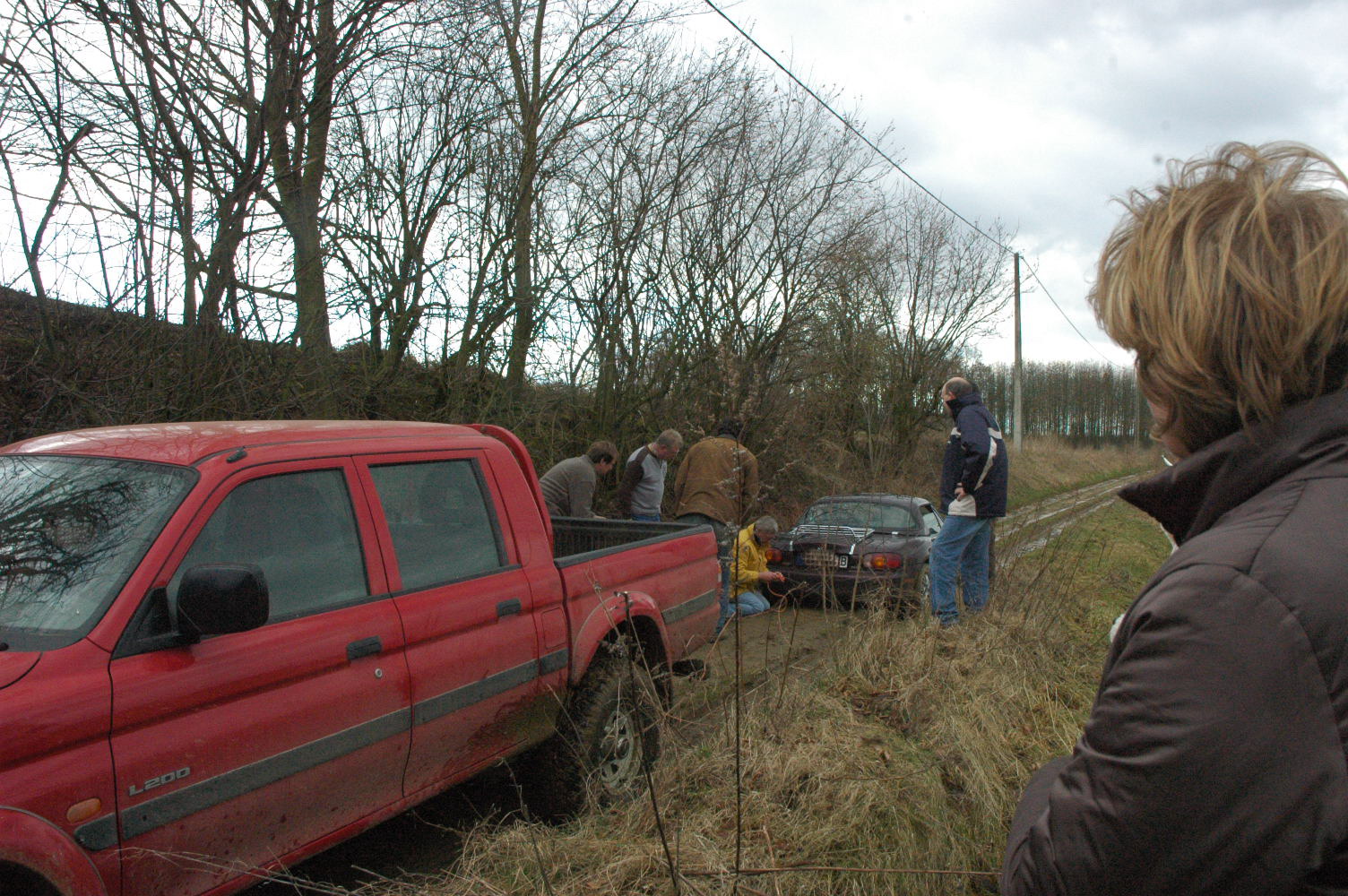 Sauvetage de la rouge ..... biennnnn bien embourbéeee elle !!!! et ce que je ne savais pas .... que je vois avec ces photos d'Eric .. (merci) c'est que c'est le sympathique copain sauveteur qui a mis le genoux en terre ... la Didier tu nous dois encore un coup !!!!!! mdrrrr