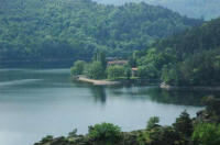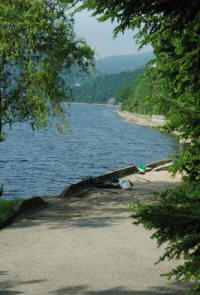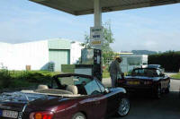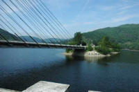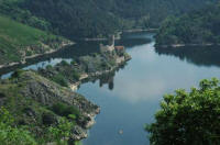 Bon .... avant le départ, elle a soif la titine ! Nous allons prendre le ti déjeuner au pied des gorges de la Loire, ou se trouve d'ailleurs un superbe pont qui est le seul pont en France suspendu par une seul poteau