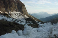 La grimpette valait bien la peine, entre deux murs de neige, une vue imprenable sur la vallée nous attend de l'autre côté,
