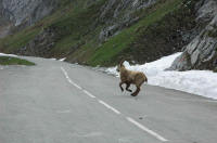 Et hop ! les voilà qui traversent, peureusement, élégamment ... rapidement pour paître sur l'autre versant !