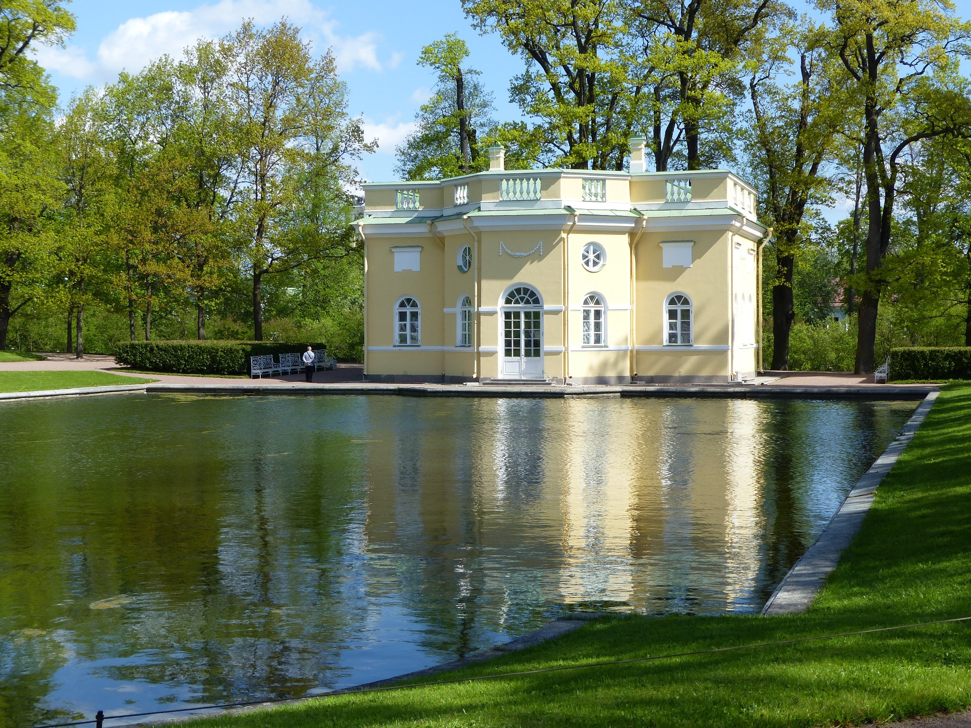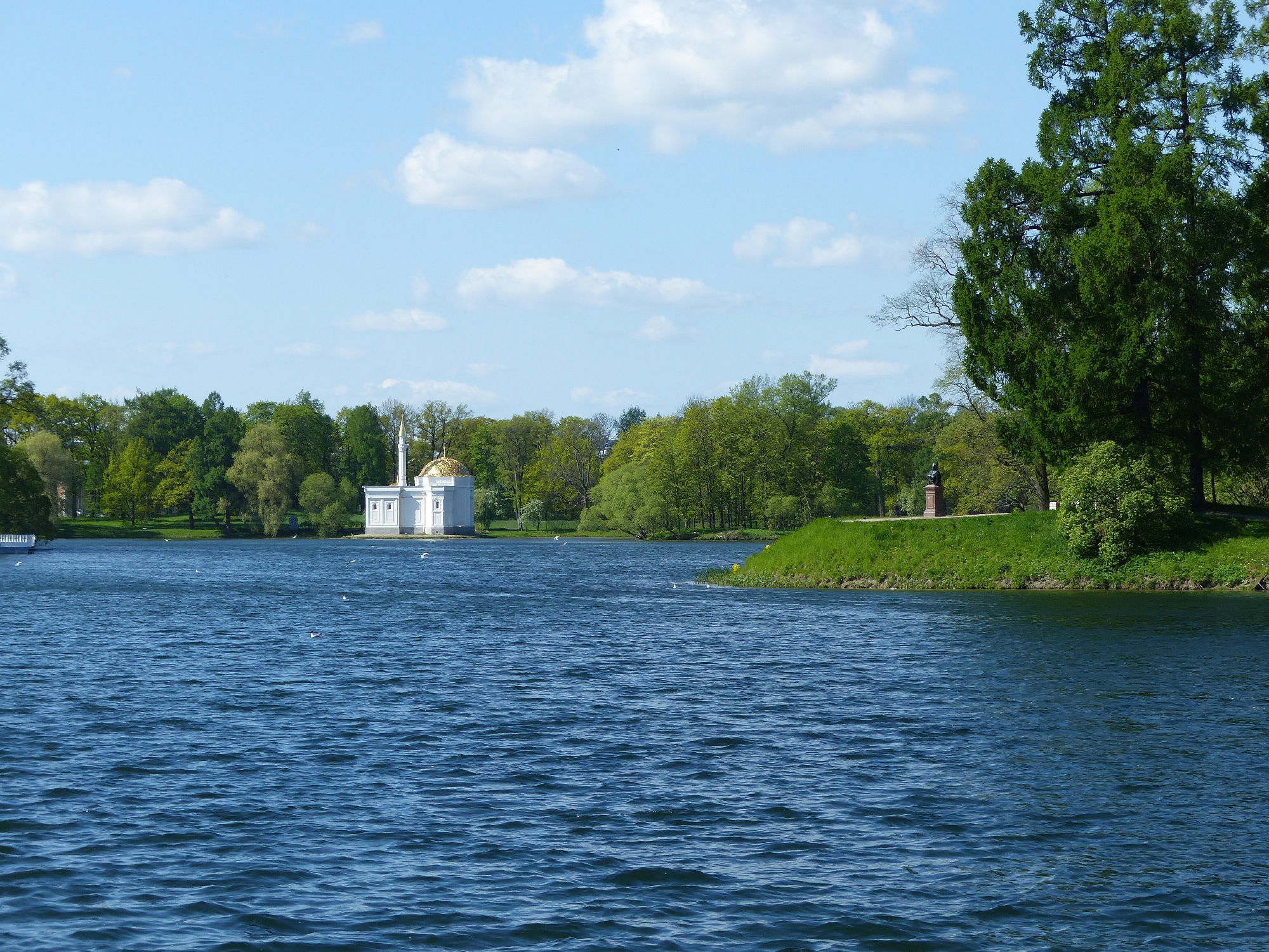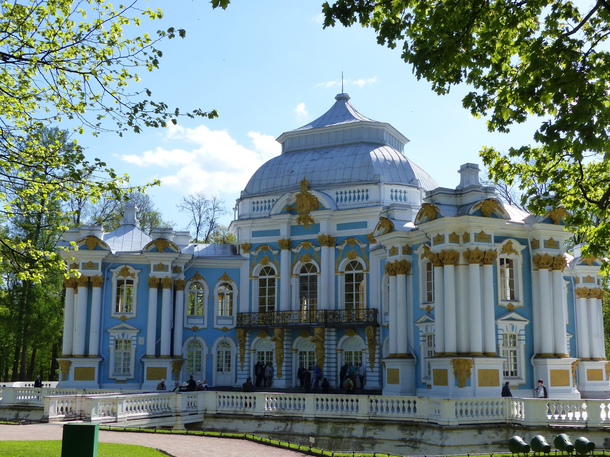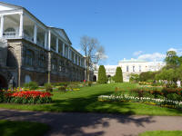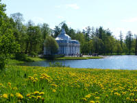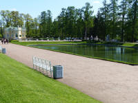 De très jolis jardins se dressent devant le palais Catherine, avec bassins, pavillons épars dans le parc, rivière et petits ponts .....
