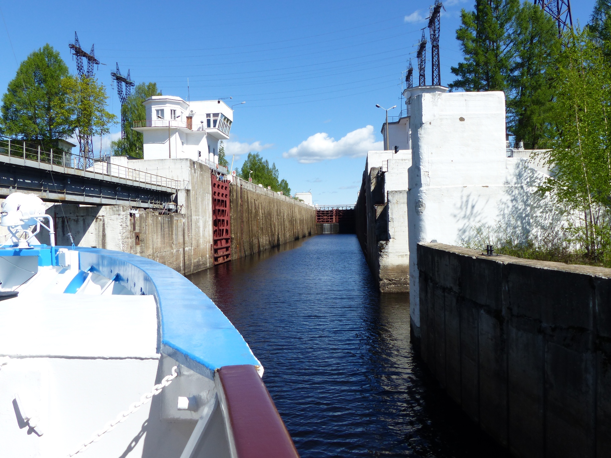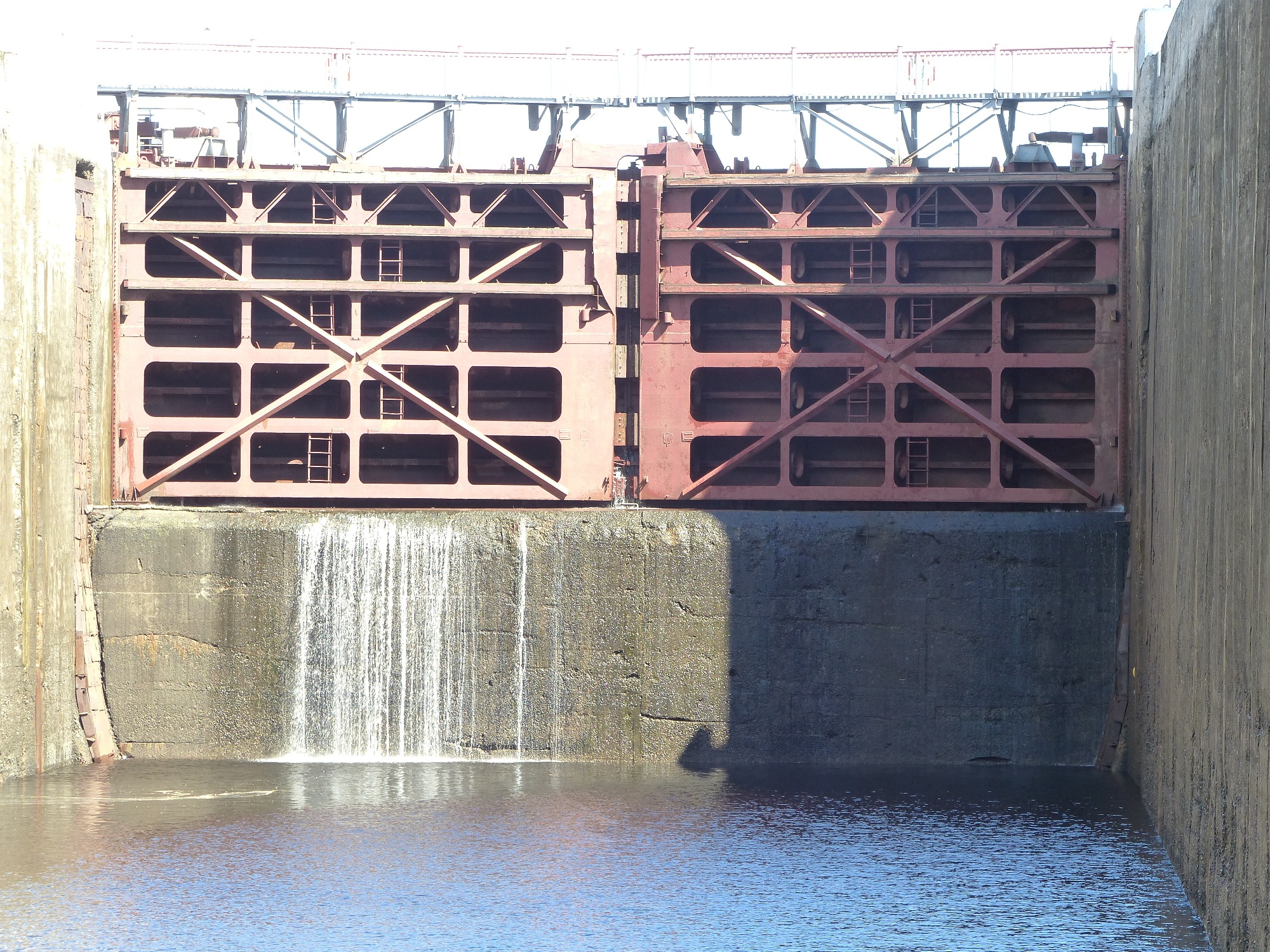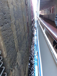 Et surtout .... les écluses .... C'est impressionnant, le barrage à gauche, l'écluse à droite, on se présente doucement devant l'entrée .... la porte est impressionnante .... on n'a pas vraiment beaucoup de place à gauche et à droite du bateau ... on se stabilise ... on attend ... et tout à coup on monte ... on monte encore ... on monte toujours ... on arrive au dessus du mur et le paysage s'offre à nous .... et devant, la porte descend .... nous offrant le reste du voyage ...... c'est sympa !!!!!!