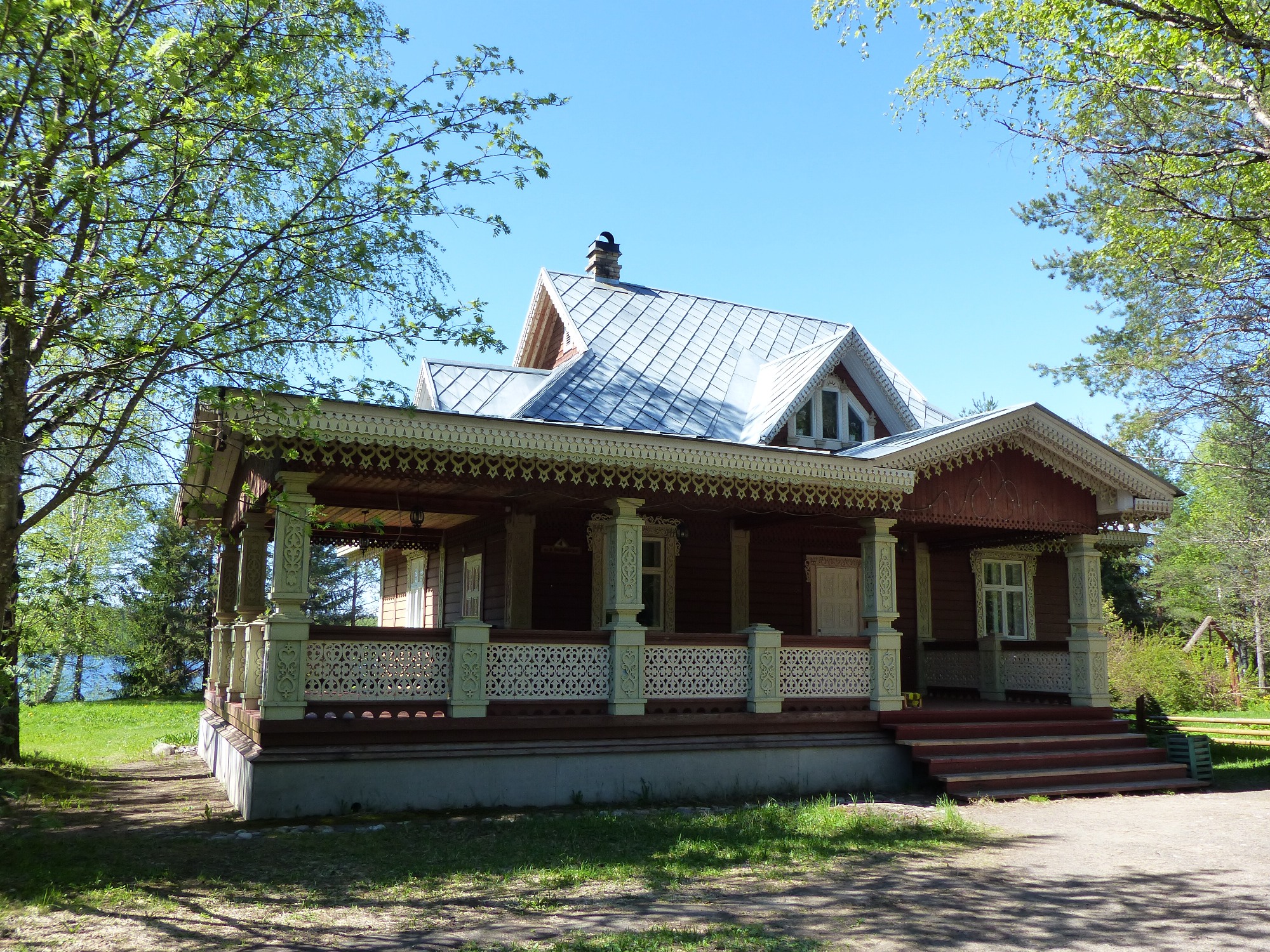 Nous avons navigué 296 km, par la Neva, le sud du lac Ladoga et la Svir, pour arriver dans la matinée à Mandrogui, village artisanal spécial touriste !!!! Mais bon ... de jolies maisons de bois reconstituées à l'ancienne me réconcilient avec l'endroit .... Il faut aussi reconnaitre que les artisans font du très très beau travail .... j'ai 5 hiboux splendides dans mon salon qui en témoignent. Une petite promenade loin des magasins et je découvre de jolies maisons et un lac