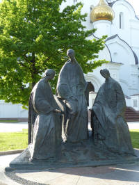 Le monument aux morts et la cathédrale de l'Asumption (toute neuve !)