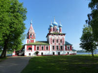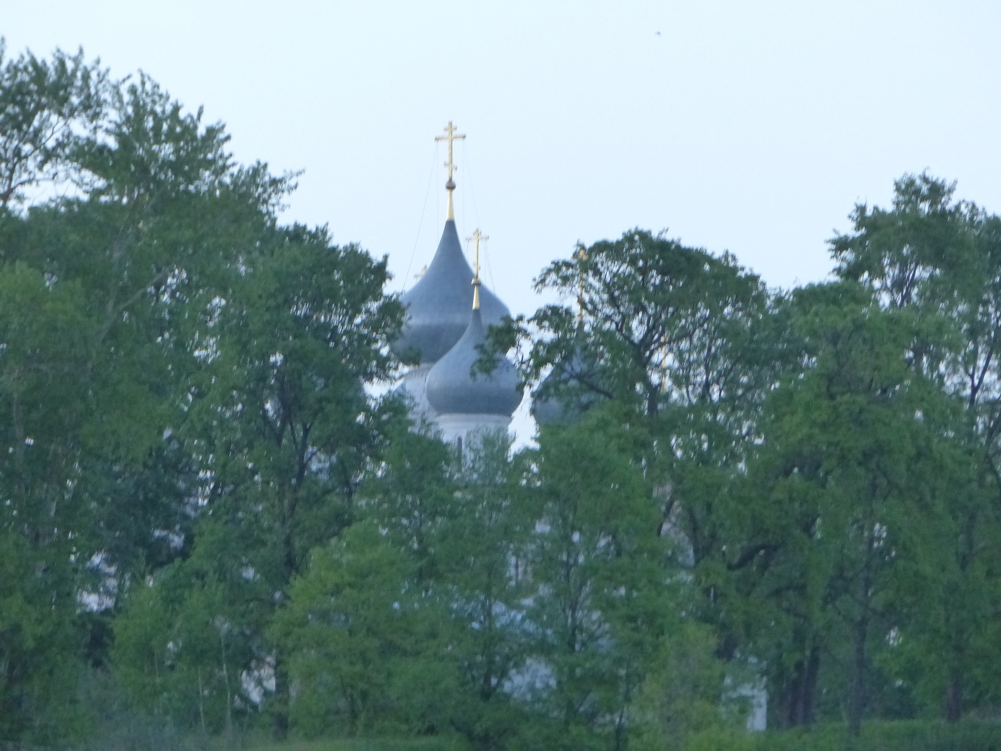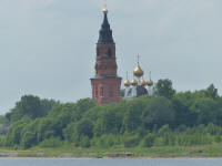 Nous reprenons la navigation avec ses maisons au bord de l'eau, ses clochers qui dépassent des arbres ça et là, de jolis bâtiments. Nous avons 209 km à faire sur la Volga.