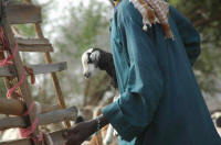 La traite des zébus, c'est une autre paire de manche ! Il faut carrément attacher le petit aux pattes de sa mère avant de pouvoir traire ...