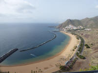 Quelques petites photos de Santa Cruz, la capitale et ses environs. Ici la fameuse plage de Santa Cruz, la playas de las Teresitas, photo à prendre depuis le belvédère ....