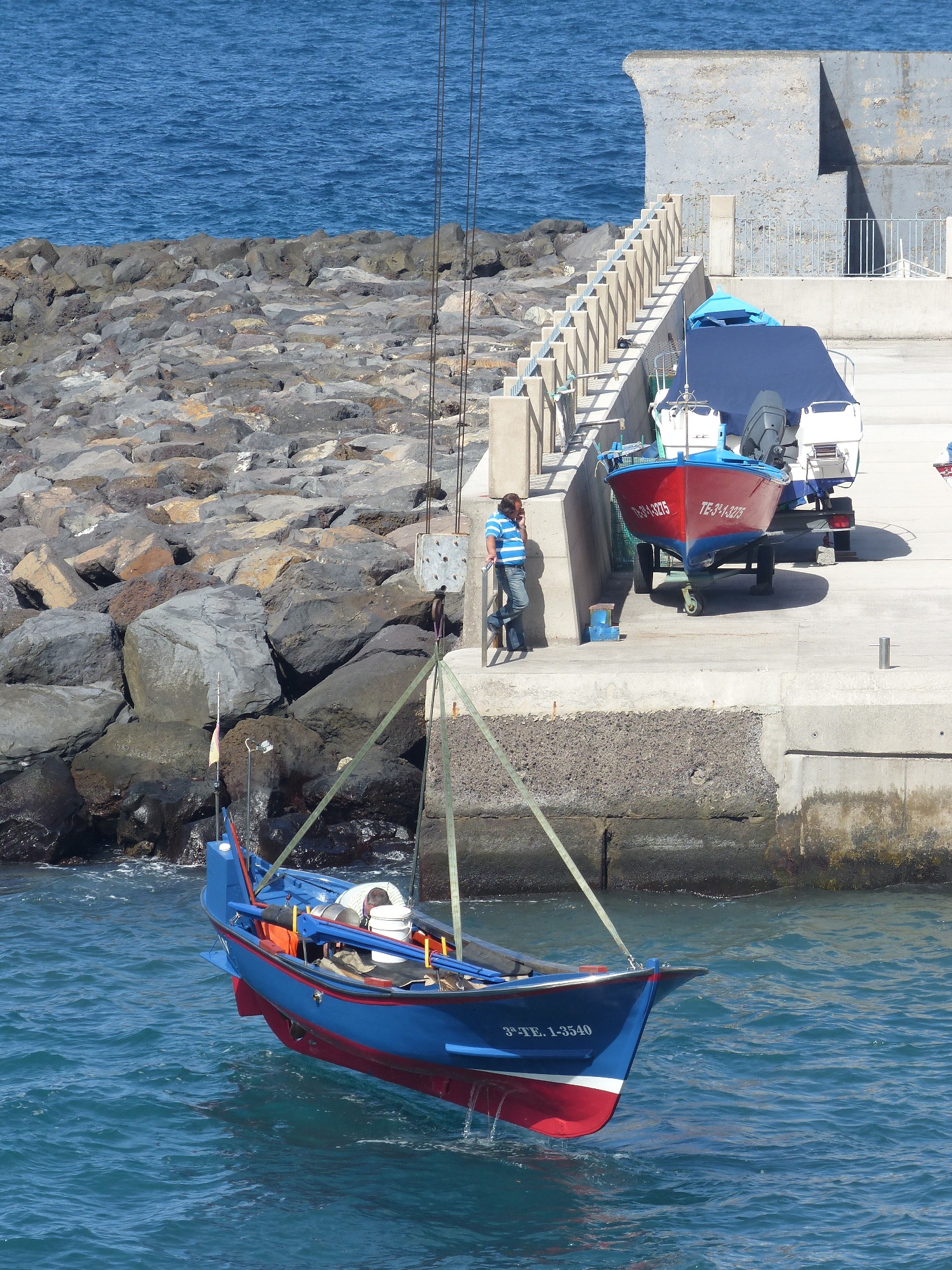 Port de pêche sans départ ... à part la grue pour mettre à l'eau, récupérer et ranger au garage a bateaux ... marrant ....