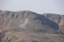 Sur les montagnes sont dessinés les emblèmes des deux partis politiques les plus importants