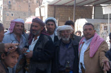 Sur la route, rassemblement d'hommes pour se procurer du quat ... c'est leur principale activité !