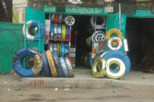 Nous reprenons la route et les postes de police se succèdent ... sisi c'est un abri pour les flics ... plus loin ... une protection colorée pour protéger le quat du soleil ....