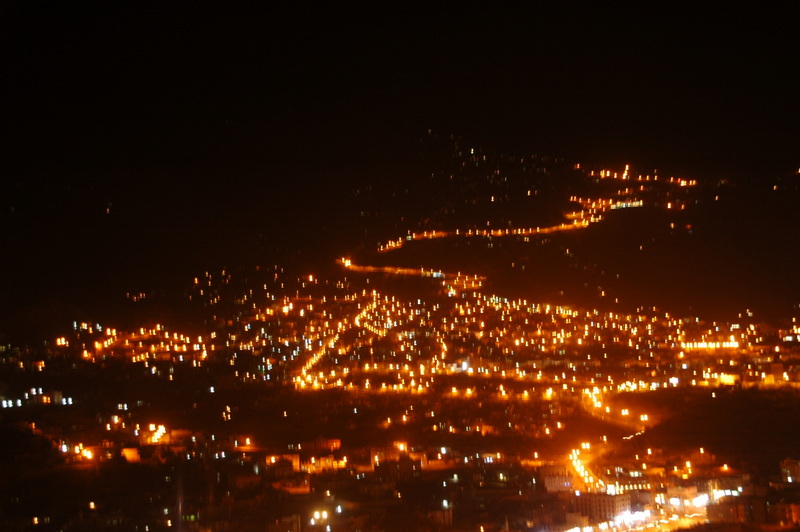 Arrivée à Taiz, que nous voyons tout illuminée sur la colline d'en face ...