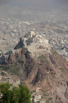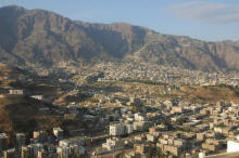 Nous visitons Taiz avant de partir pour la Mer Rouge ... la colline est éteinte et la ville nous apparait ...
